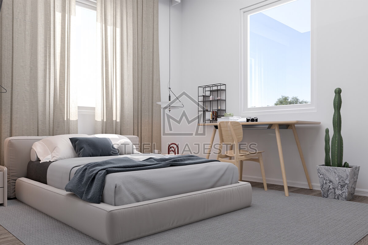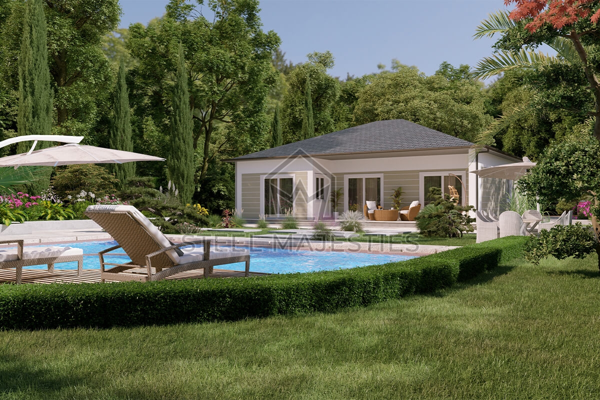 The 128 m² size is expertly allocated into 4+1 living spaces to provide the best comfort. Experience the privileges of independent living by creating beautiful memories filled with happiness in a prefabricated villa.