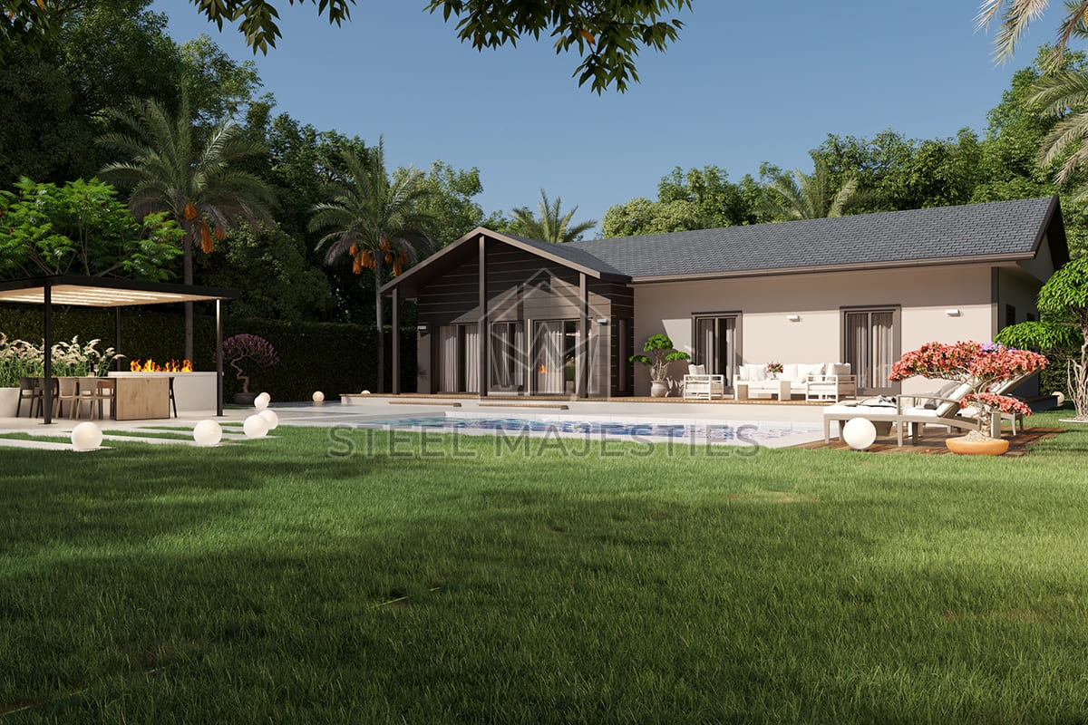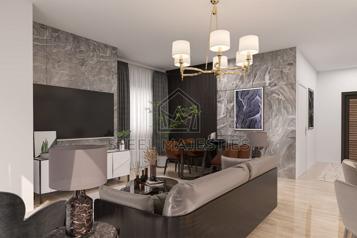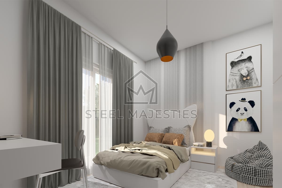 Grâce à son système innovant qui facilite l'accès à la propriété, le modèle de villa préfabriquée de 120 m² transforme les rêves en réalité. Des conceptions innovantes associées à la structure en acier de la construction préfabriquée garantissent une sécurité inégalée dans les logements de luxe. La villa préfabriquée est un modèle de logement sécurisé conçu pour les beaux moments de la vie.