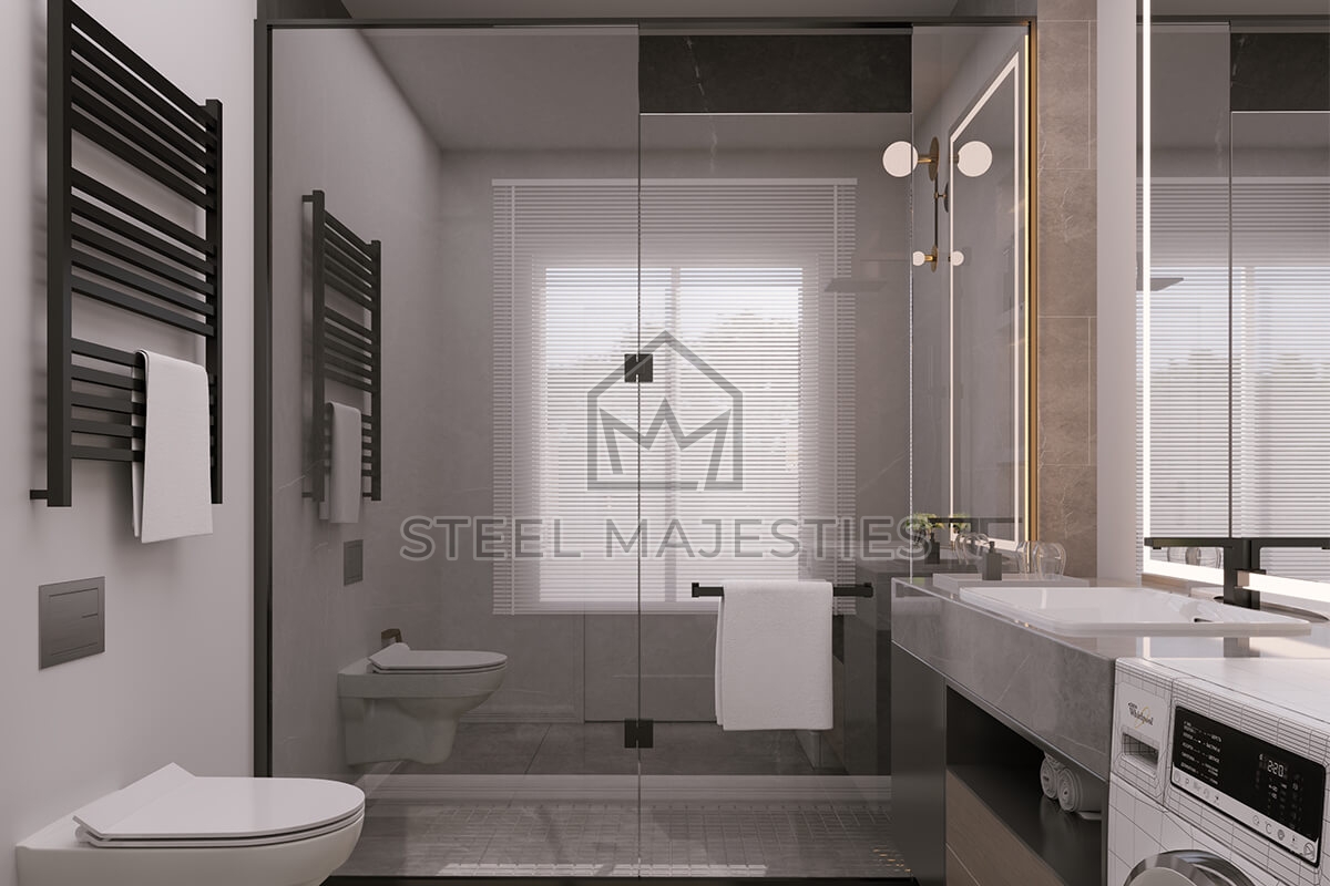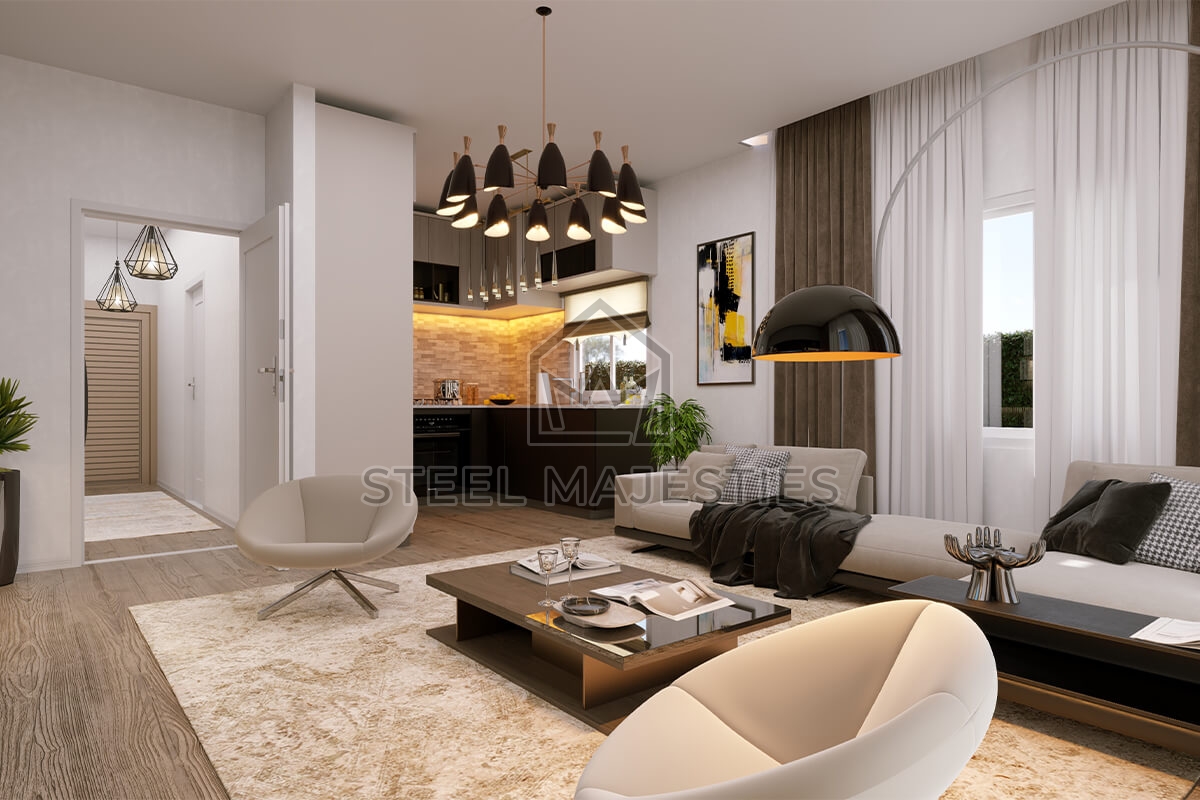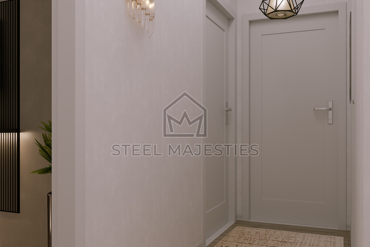 Grâce à son système innovant qui facilite l'accès à la propriété, le modèle de villa préfabriquée de 95 m² transforme les rêves en réalité. Des conceptions innovantes associées à la structure en acier de la construction préfabriquée garantissent une sécurité inégalée dans les logements de luxe. La villa préfabriquée est un modèle de logement sécurisé conçu pour les beaux moments de la vie.