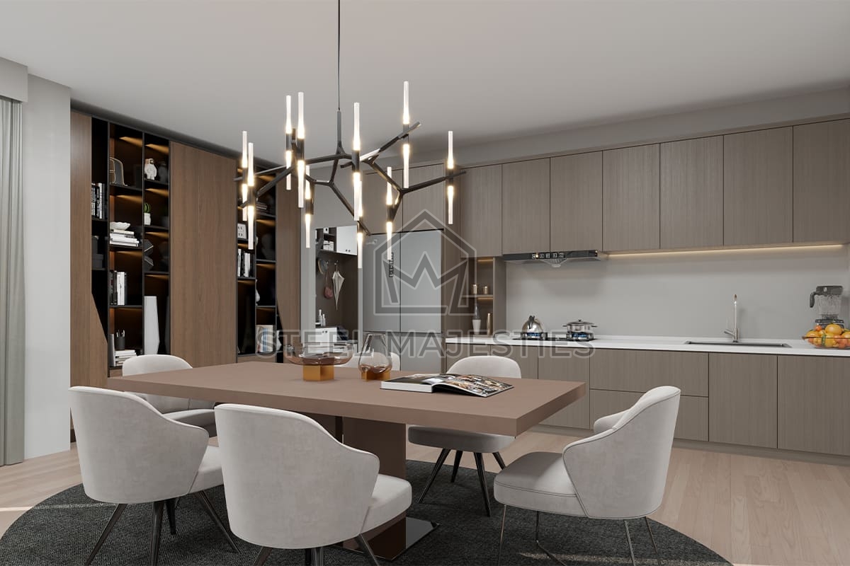 La superficie de 157 m² est habilement répartie en 5+1 espaces de vie pour offrir le meilleur confort. Découvrez les privilèges d'une vie indépendante en créant de beaux souvenirs remplis de bonheur dans une villa préfabriquée.