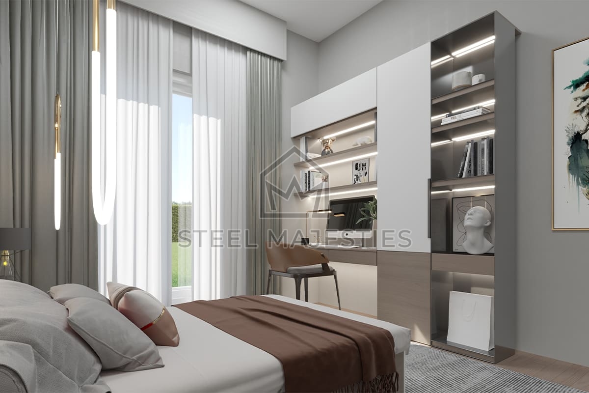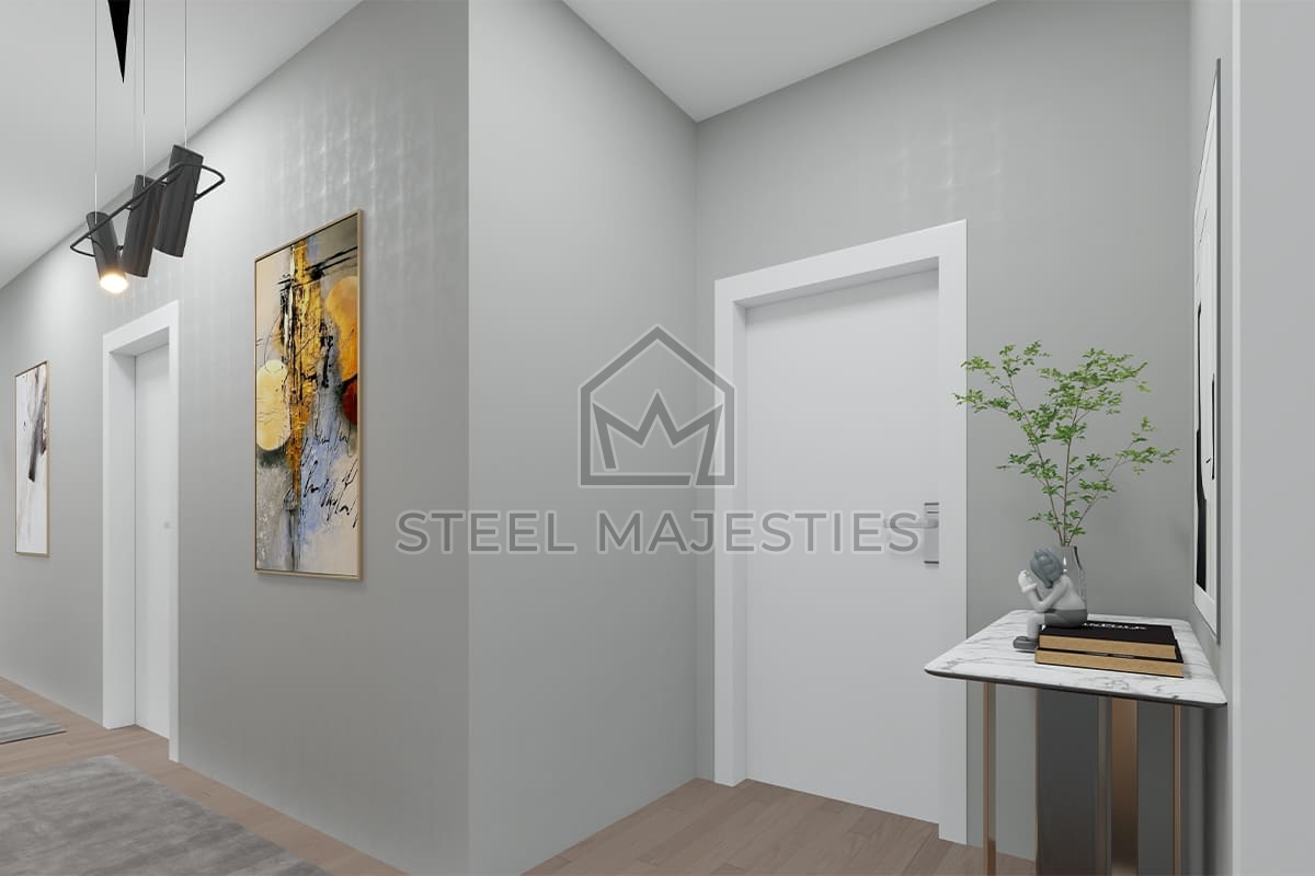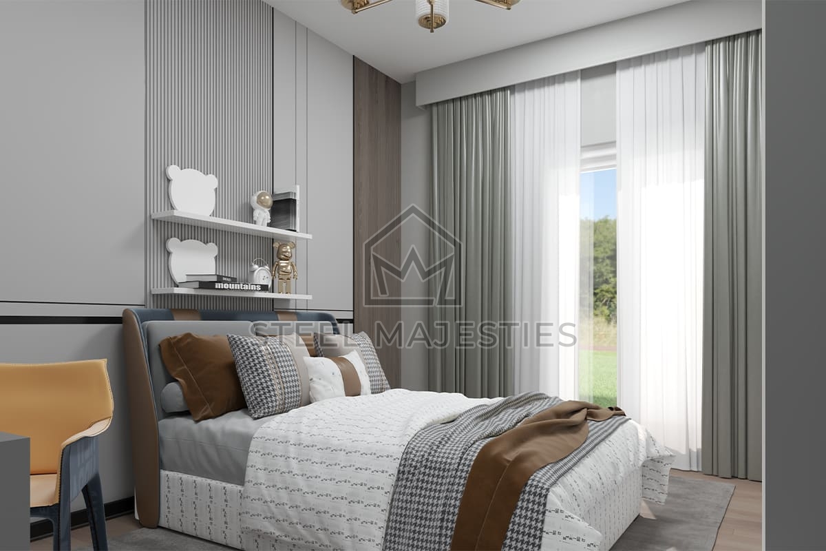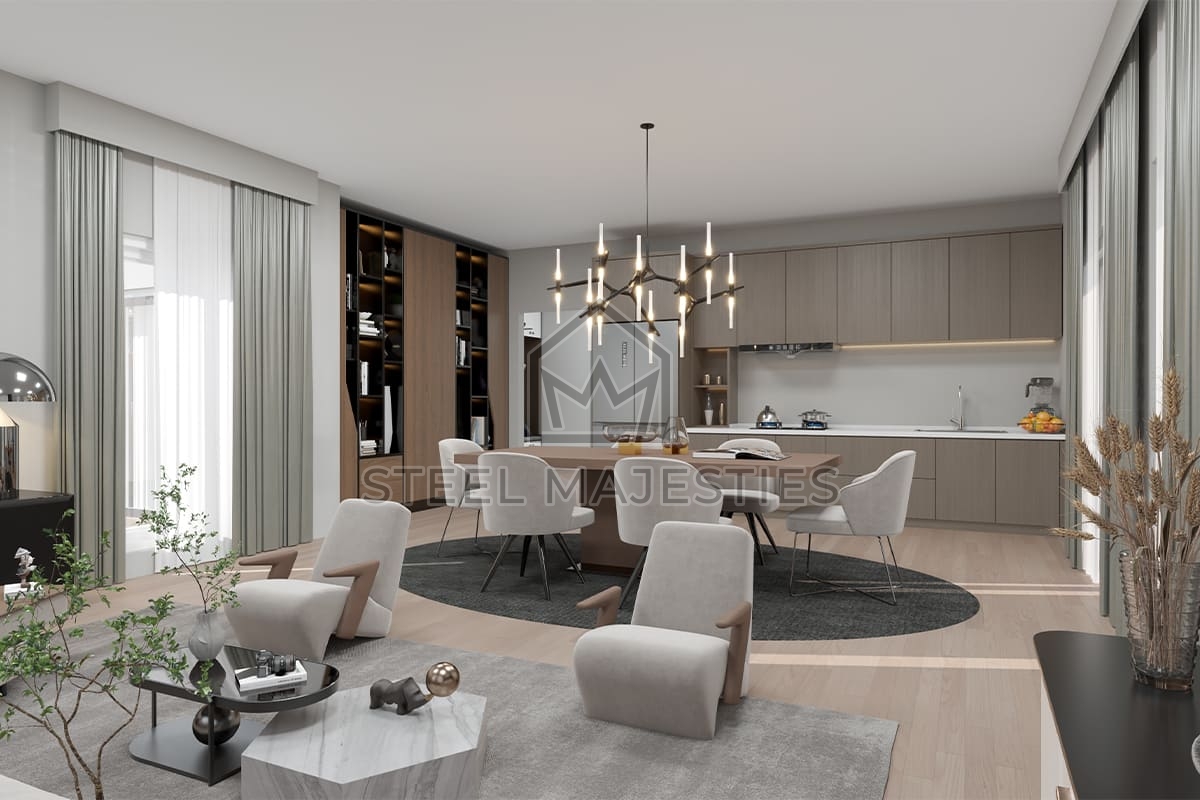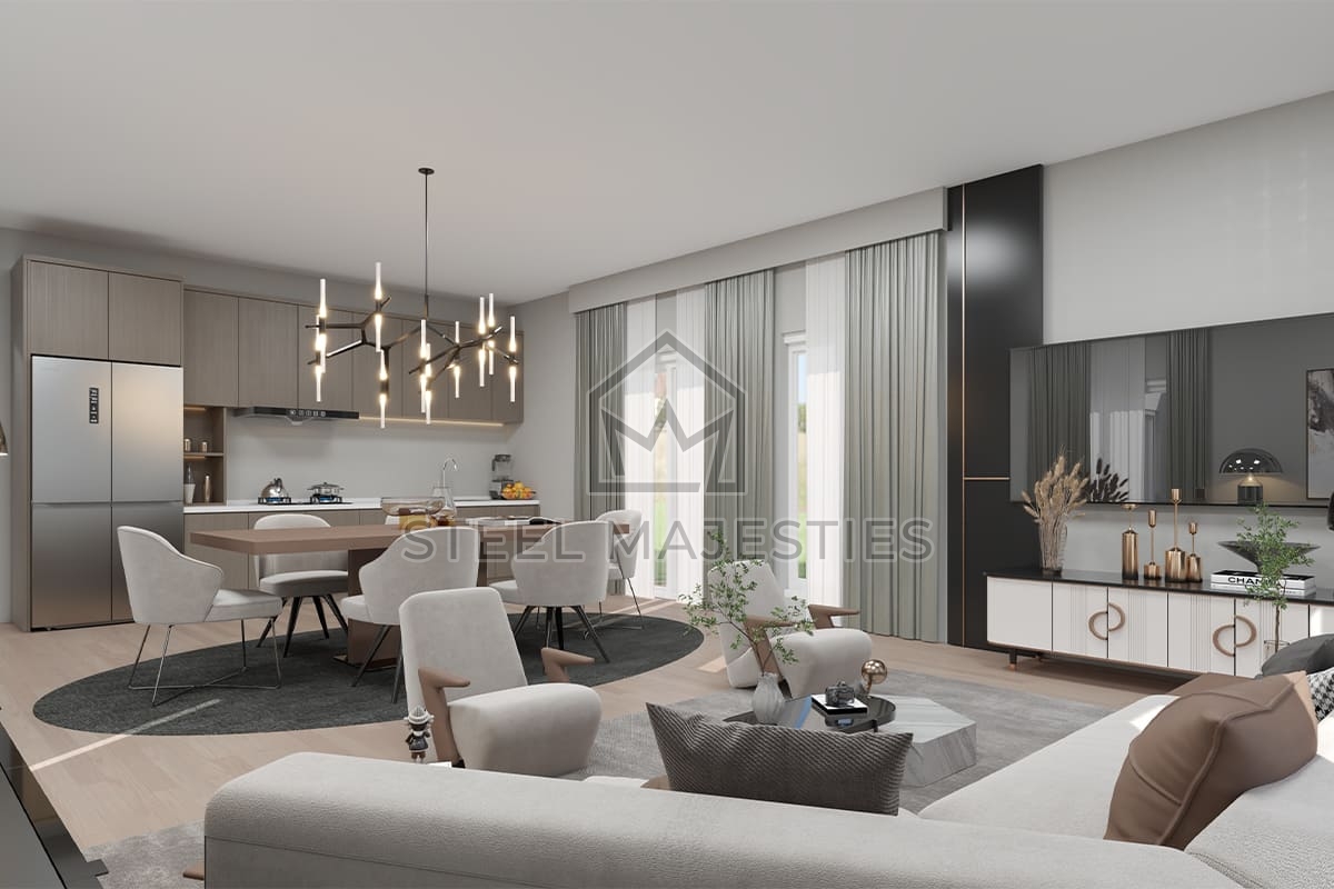 Avec son système innovant qui facilite l'accès à la propriété, le modèle de villa préfabriquée de 157 m² transforme les rêves en réalité. Des conceptions innovantes associées à la structure en acier de la construction préfabriquée garantissent une sécurité inégalée dans les logements de luxe. La villa préfabriquée est un modèle de logement sécurisé conçu pour les beaux moments de la vie.