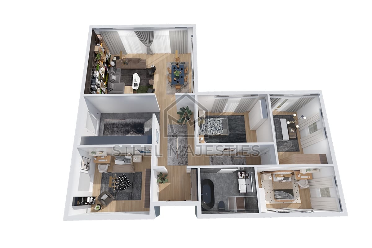 Avec son système innovant qui facilite l'accès à la propriété, le modèle de villa préfabriquée de 146 m² transforme les rêves en réalité. Des conceptions innovantes associées à la structure en acier de la construction préfabriquée garantissent une sécurité inégalée dans les logements de luxe. La villa préfabriquée est un modèle de logement sécurisé conçu pour les beaux moments de la vie.