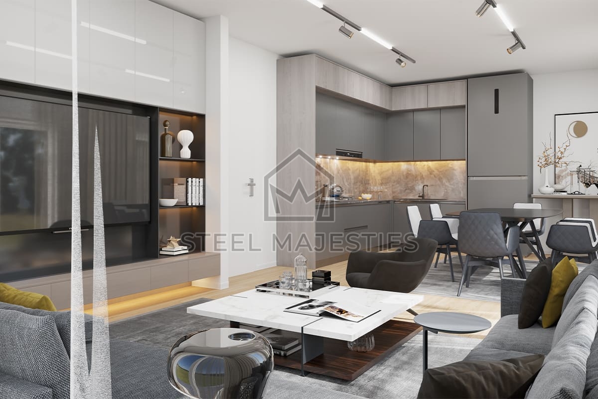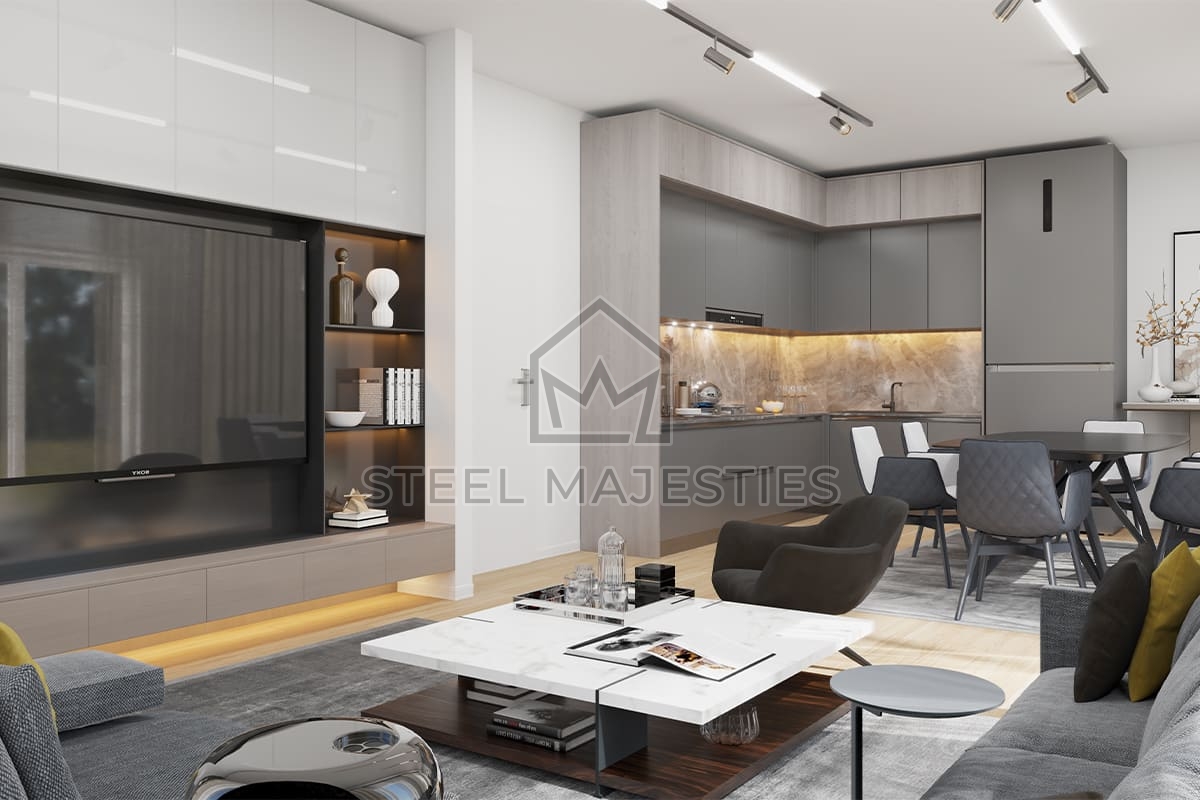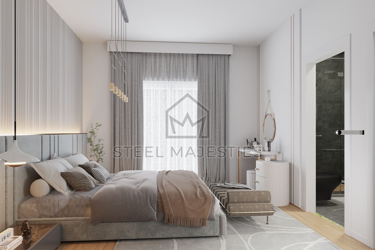 Grâce à son système innovant qui facilite l'accès à la propriété, le modèle de villa préfabriquée de 100 m² transforme les rêves en réalité. Des conceptions innovantes associées à la structure en acier de la construction préfabriquée garantissent une sécurité inégalée dans les logements de luxe. La villa préfabriquée est un modèle de logement sécurisé conçu pour les beaux moments de la vie.