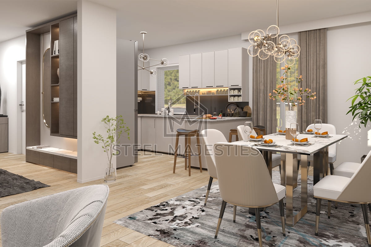 Grâce à son système innovant qui facilite l'accès à la propriété, le modèle de villa préfabriquée de 200 m² transforme les rêves en réalité. Des conceptions innovantes associées à la structure en acier de la construction préfabriquée garantissent une sécurité inégalée dans les logements de luxe. La villa préfabriquée est un modèle de logement sécurisé conçu pour les beaux moments de la vie.