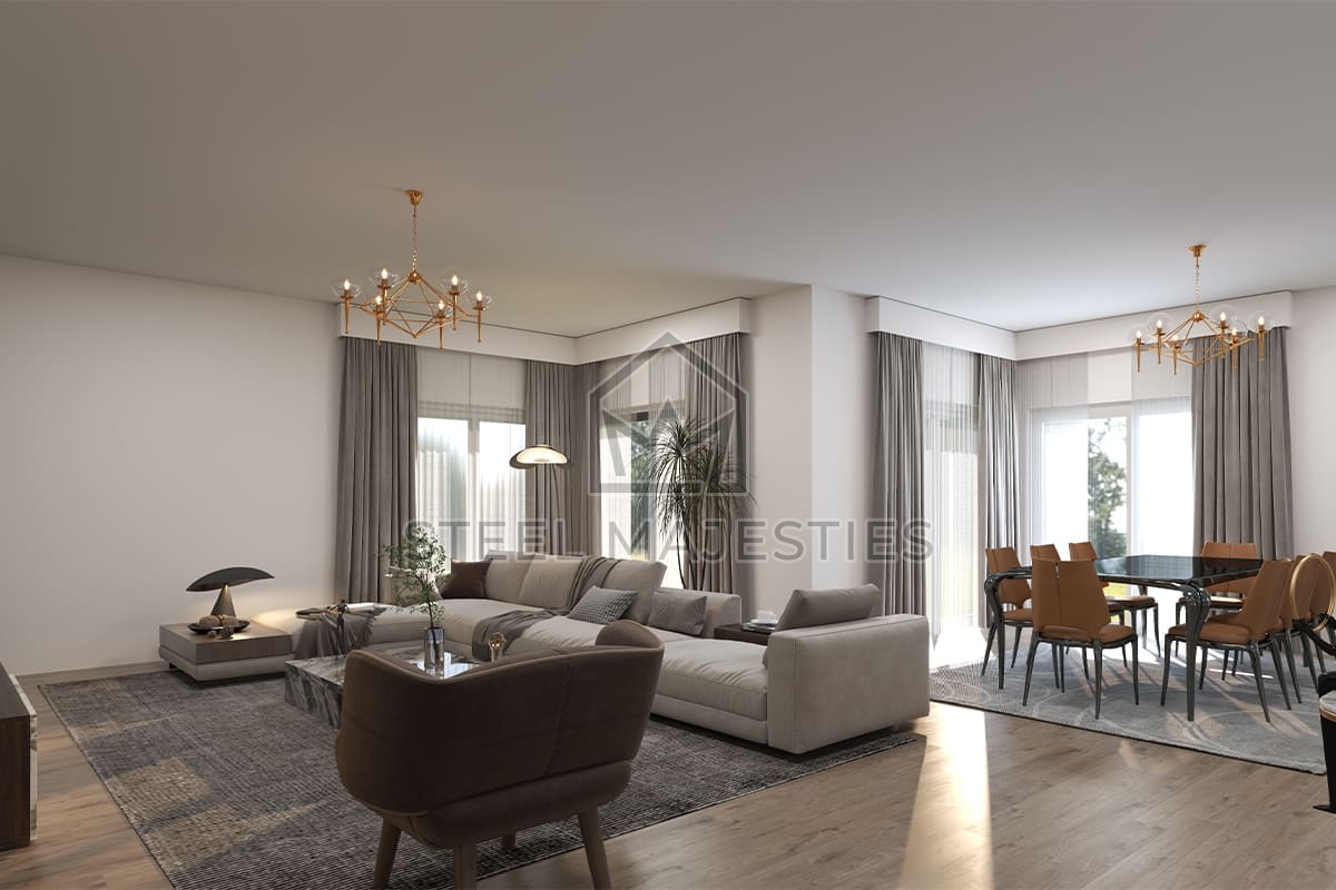 Grâce à son système innovant qui facilite l'accès à la propriété, le modèle de villa préfabriquée de 240 m² transforme les rêves en réalité. Des conceptions innovantes associées à la structure en acier de la construction préfabriquée garantissent une sécurité inégalée dans les logements de luxe. La villa préfabriquée est un modèle de logement sécurisé conçu pour les beaux moments de la vie.