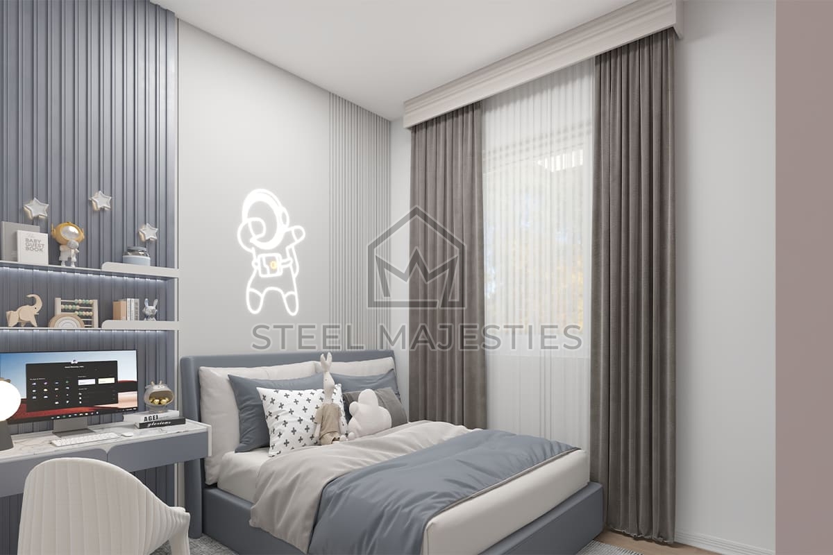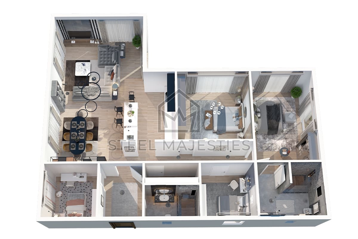 Avec son système innovant qui facilite l'accès à la propriété, le modèle de villa préfabriquée de 162 m² transforme les rêves en réalité. Des conceptions innovantes associées à la structure en acier de la construction préfabriquée garantissent une sécurité inégalée dans les logements de luxe. La villa préfabriquée est un modèle de logement sécurisé conçu pour les beaux moments de la vie.