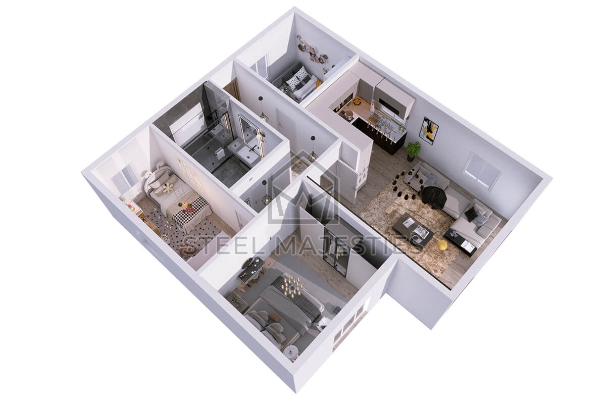 With its innovative system that makes homeownership easier, the 95 m² prefabricated villa model turns dreams into reality. Innovative designs combined with the steel framework of the prefabricated structure ensure unmatched safety in luxury housing. The prefabricated villa is a secure housing model designed for life's beautiful moments.