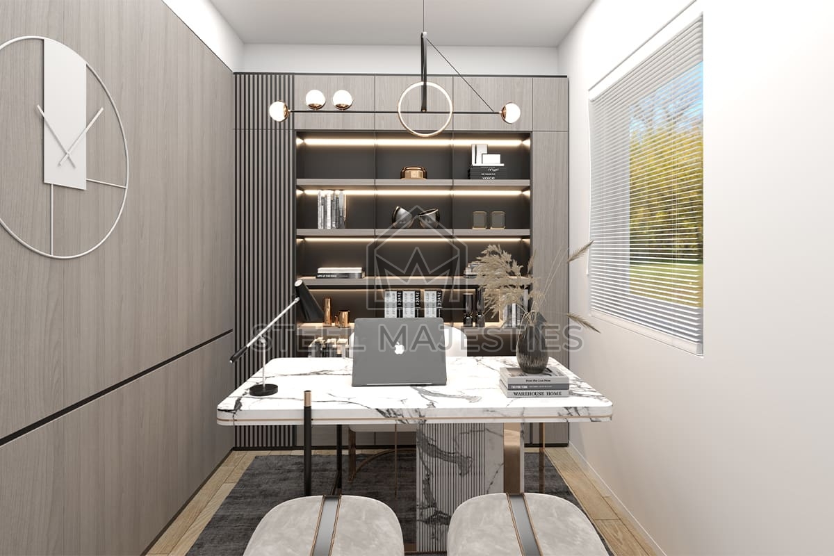 The 200 m² size is expertly allocated into 6+2 living spaces to provide the best comfort. Experience the privileges of independent living by creating beautiful memories filled with happiness in a prefabricated villa.