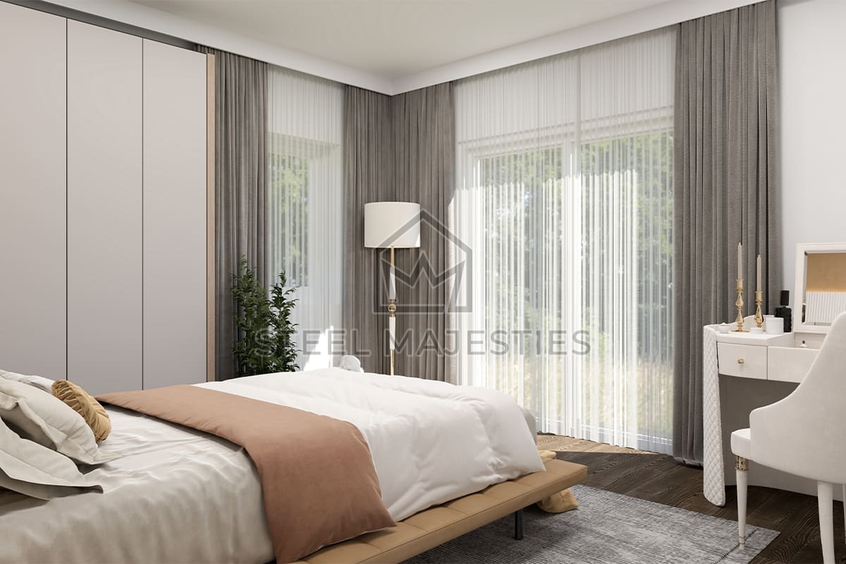 Ev sahibi olmayı kolaylaştıran yenilikçi sistemiyle prefabrik villa 187 m² konut modeli ile hayaller gerçekleşiyor. Yenilikçi tasarımlar prefabrik yapı sisteminin çelik taşıyıcılarıyla lüks konutta benzersiz güvenlik sağlıyor. Prefabrik villa hayatın güzel anları için güvenli konut modeli. 187 m² büyüklük 5+2 yaşam alanlarına en iyi konfor için uzmanlıkla paylaştırıldı. Müstakil yaşamın ayrıcalıklarını prefabrik villa içerisinde güzel anılar biriktirerek mutluluklarla deneyimleyin.