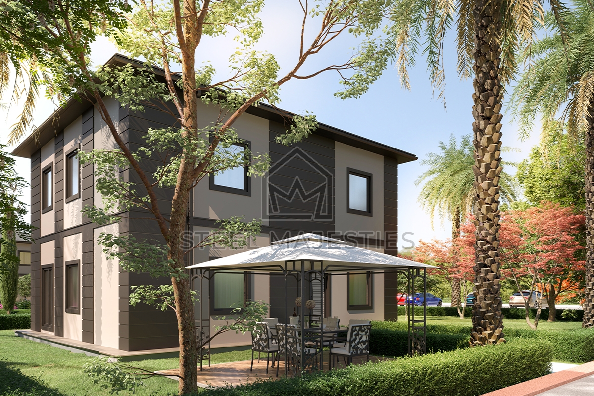 Ev sahibi olmayı kolaylaştıran yenilikçi sistemiyle prefabrik villa 148 m² konut modeli ile hayaller gerçekleşiyor. Yenilikçi tasarımlar prefabrik yapı sisteminin çelik taşıyıcılarıyla lüks konutta benzersiz güvenlik sağlıyor. Prefabrik villa hayatın güzel anları için güvenli konut modeli. 148 m² büyüklük 4+1 yaşam alanlarına en iyi konfor için uzmanlıkla paylaştırıldı. Müstakil yaşamın ayrıcalıklarını prefabrik villa içerisinde güzel anılar biriktirerek mutluluklarla deneyimleyin.